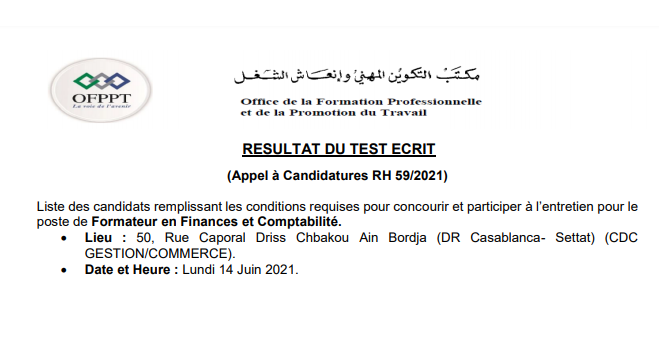 مستجدات الوظيفة لائحة المدعوين لإجراء الاختبار الشفوي لمباراة توظيف 22 مكون في المحاسبة و المالية بمكتب التكوين المهني وإنعاش الشغل Admin لائحة المدعوين لإجراء الاختبار الشفوي لمباراة توظيف 22 مكون في المحاسبة و المالية بمكتب التكوين المهني وإنعاش الشغللائحة المدعوين لإجراء الاختبار الشفوي Admin مقالات قد تهمك