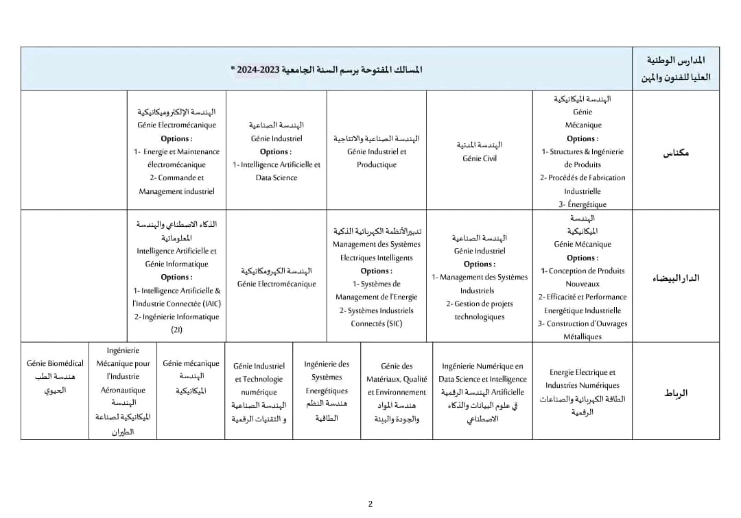 مذكرة مباراة ولوج المدارس الوطنية العليا للفنون والمهن 2023-2024