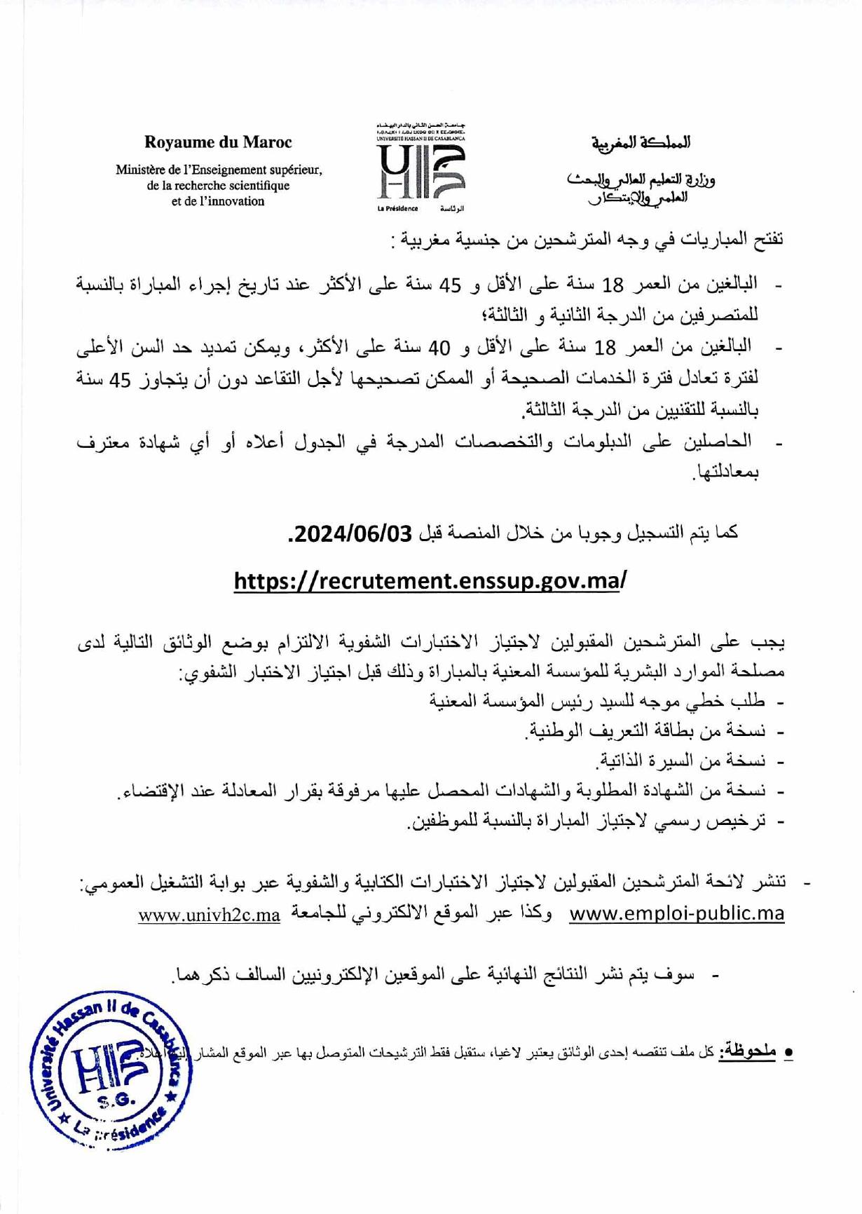 مستجدات الوظيفة مباراة توظيف 33 منصب بجامعة الحسن الثاني الدارالبيضاء آخر أجل 2 يونيو 2024 Admin مباراة توظيف 33 منصب بجامعة الحسن الثاني الدارالبيضاء آخر أجل 2 يونيو 2024جامعة الحسن الثاني الدارالبيضاءمباراة توظيف 33 منصب بجامعة الحسن الثاني الدارالبيضاء 2024آخر أجل 2 يونيو 2024مباراة توظيف 33 منصب بجامعة الحسن الثاني الدارالبيضاءرابط التسجيل Admin مقالات قد تهمك